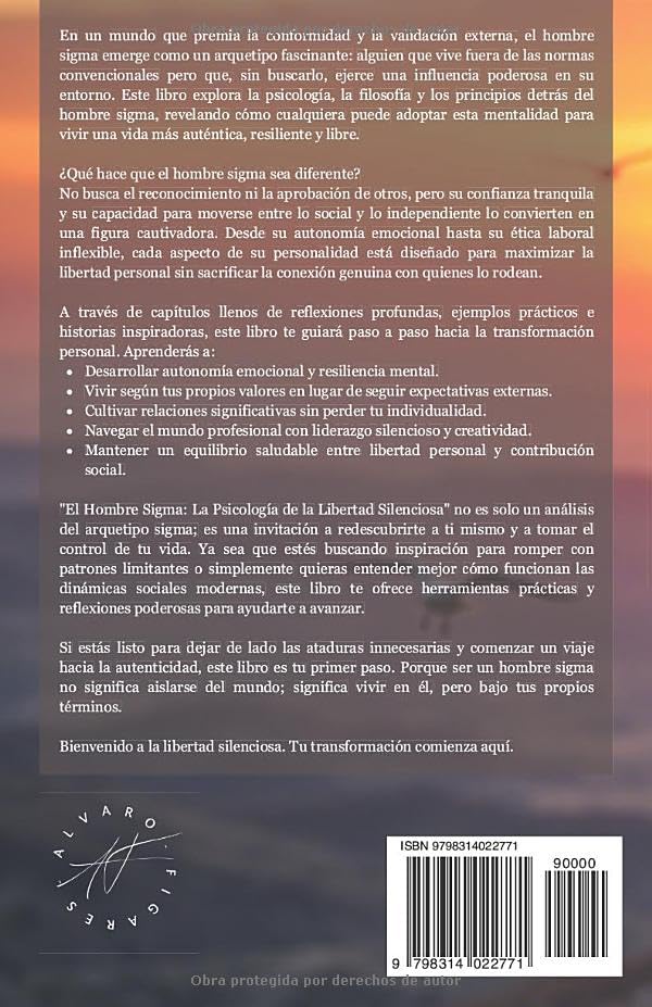 Si estás listo para dejar de lado las ataduras innecesarias y comenzar un viaje hacia la autenticidad, este libro es tu primer paso. Porque ser un hombre sigma no significa aislarse del mundo; significa vivir en él, pero bajo tus propios términos.